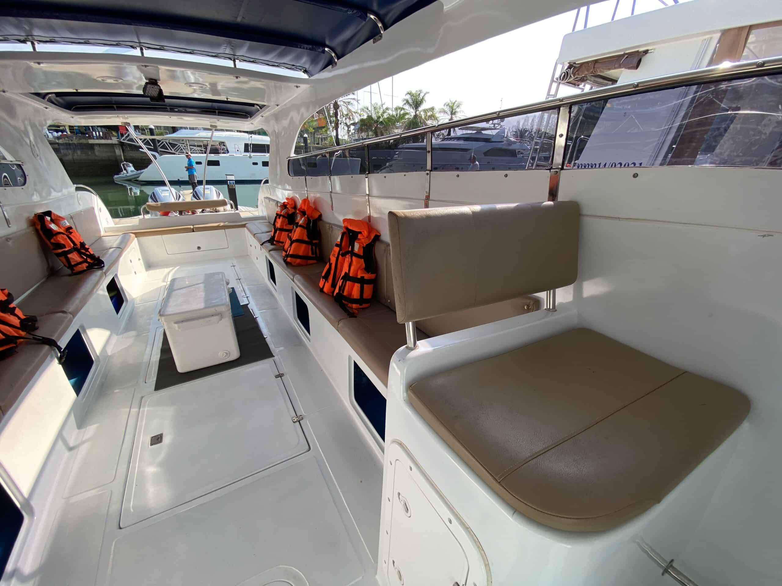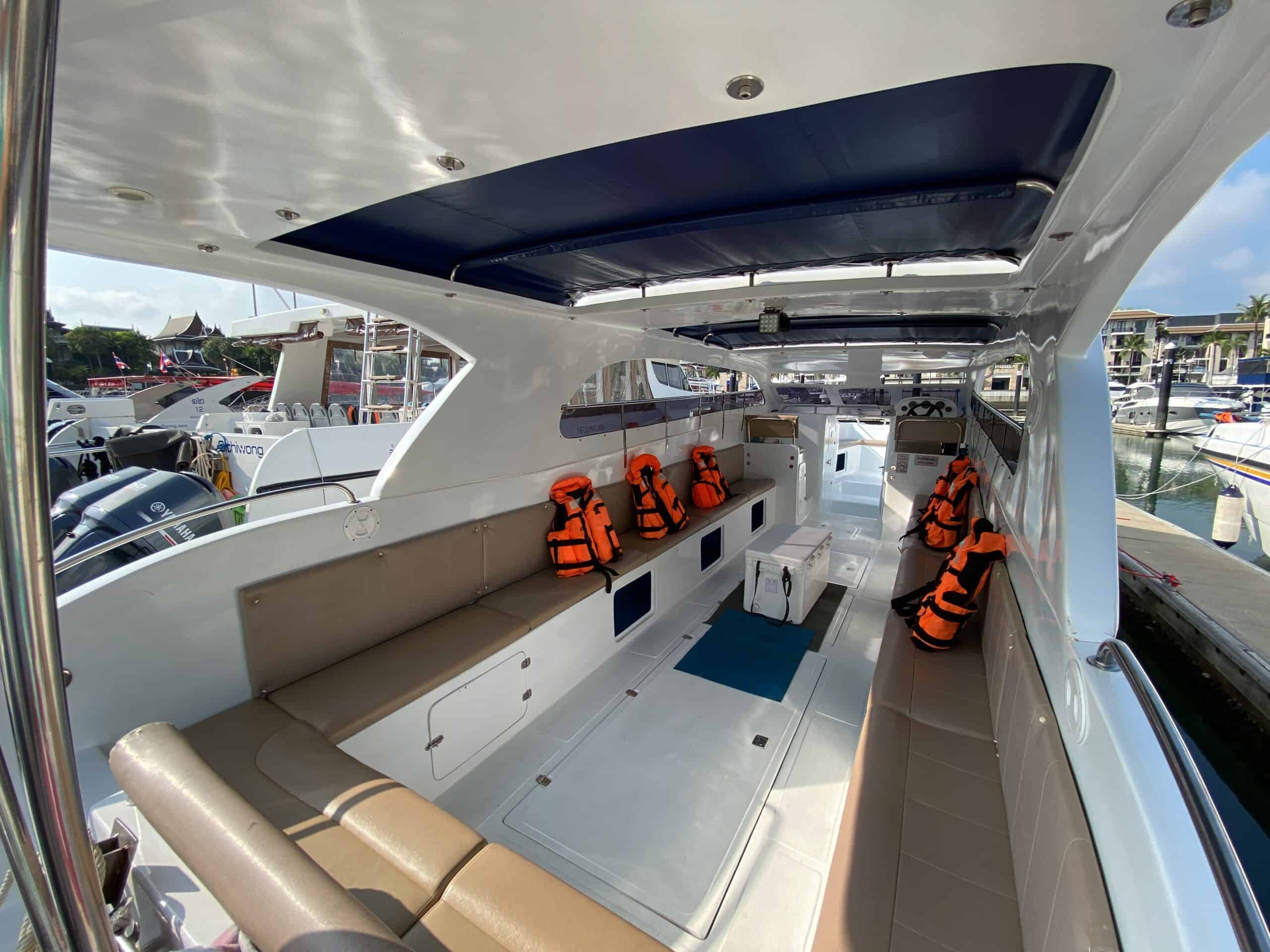 Our speedboats aren't jam-packed. We make sure there's enough space for everyone to have a comfy ride. And guess what? No chairs in the middle - just lots of room for you to stretch out and enjoy. It's all about comfort here!